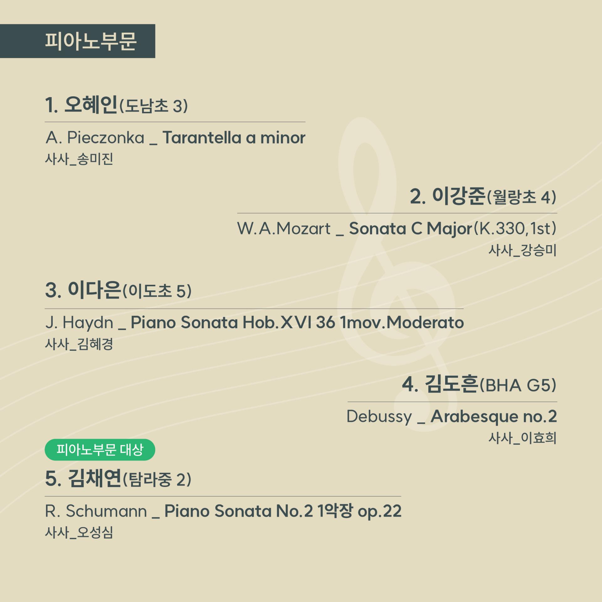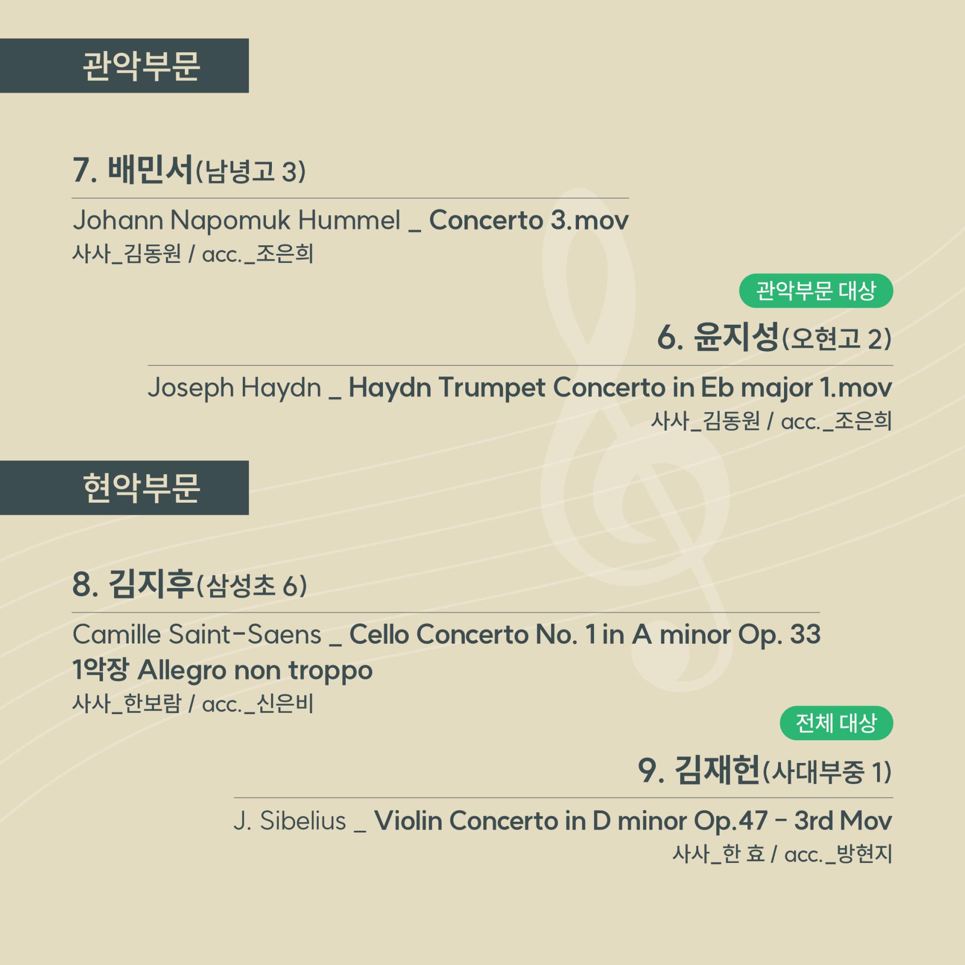 학년별 대상, 부문별 대상, 전체 대상 수상자의 연주회가 열립니다.